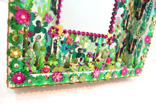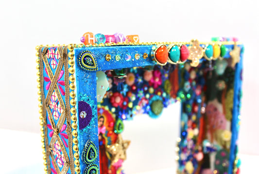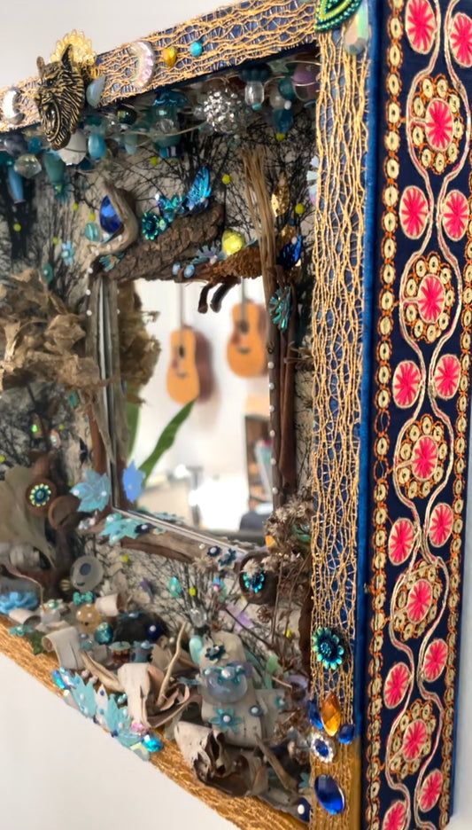 Fabriqués dans un cadre avec profondeur, ces miroirs de poésie lumineux sont une fenêtre vers les mondes invisibles. Les miroirs ont toujours été des portails énergétiques et ils nous renvoient le reflet de nous-même.