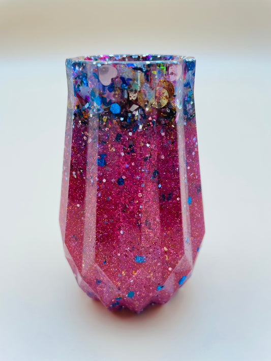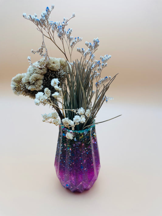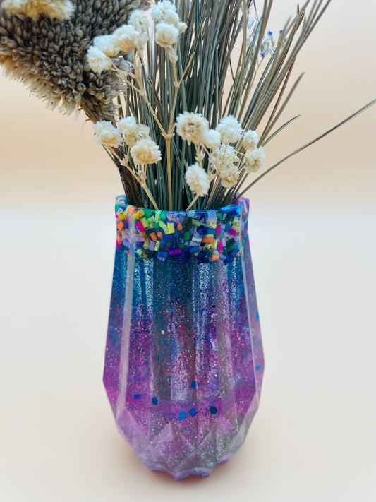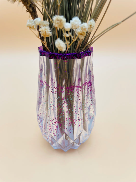 Conçus en résine scintillante et agrémentés de paillettes, chaque vase est unique et porte en lui un charme féérique, prêt à sublimer n’importe quelle fleur et à créer une ambiance de poésie.