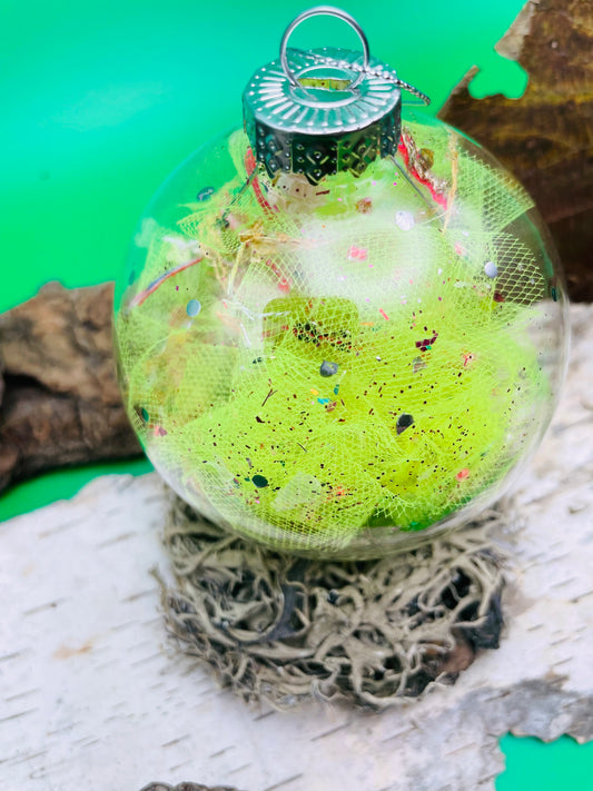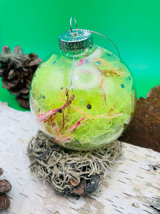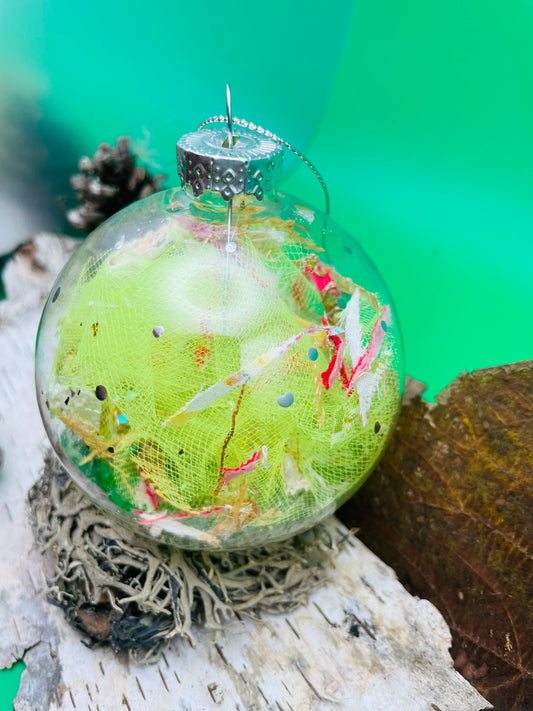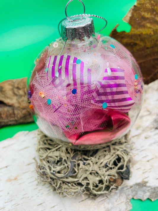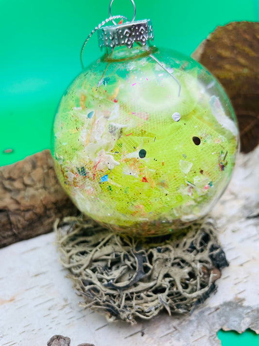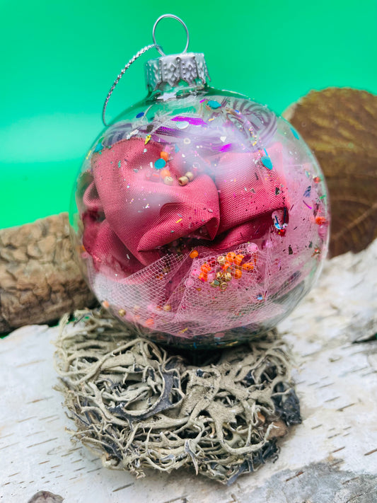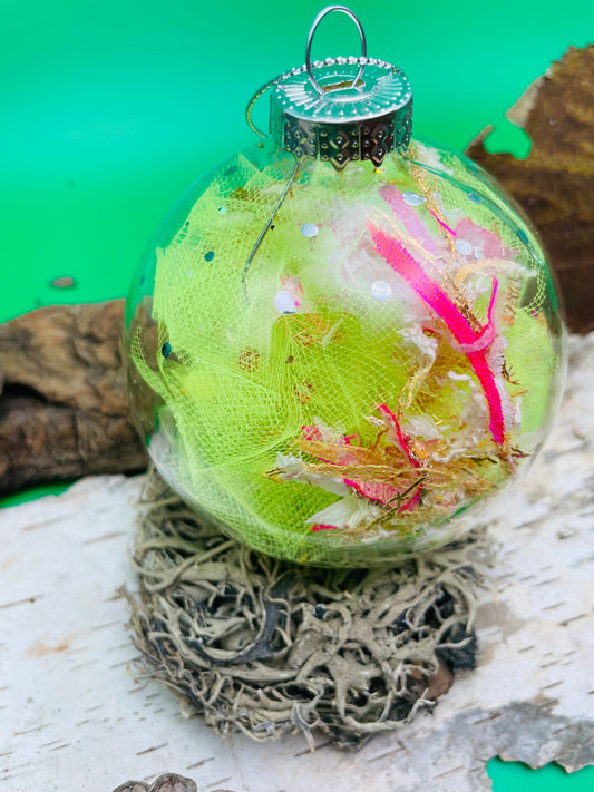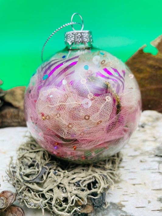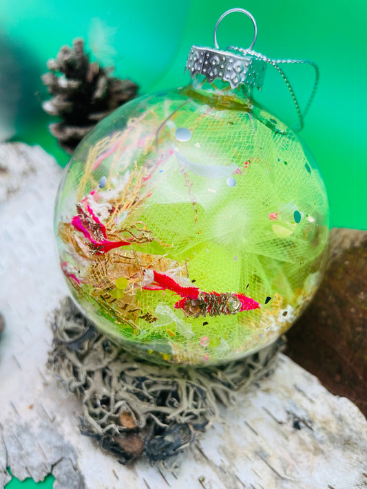 Nées des reliquats de mes autres œuvres, ces boules uniques viennent prolonger la magie jusque dans votre sapin… ou ailleurs