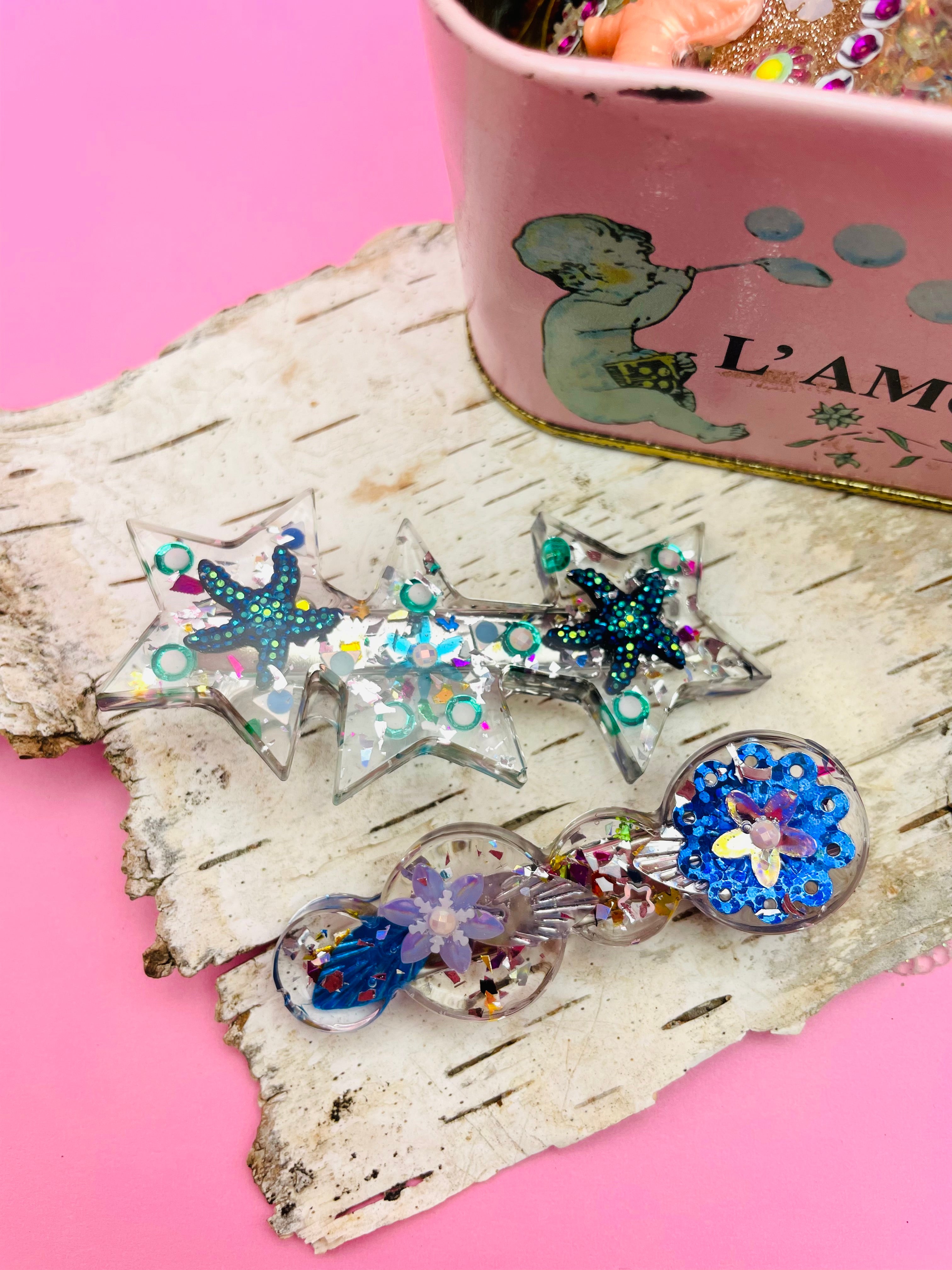 Multi-use hair clips !!! These hair clips duos consist of 2 different but coordinated barrettes so that you can accessorize your hairstyles or outfits with a touch of magic.