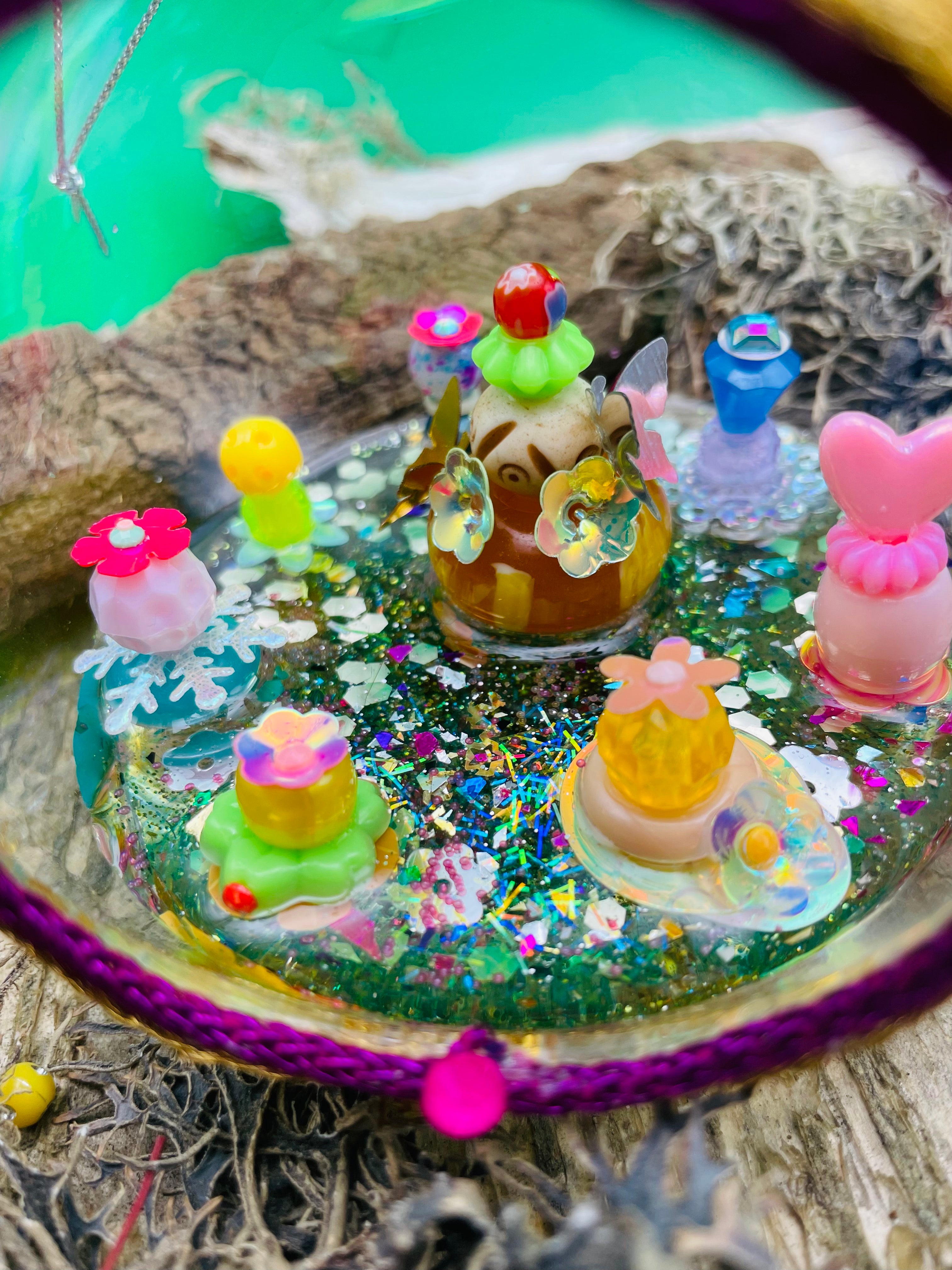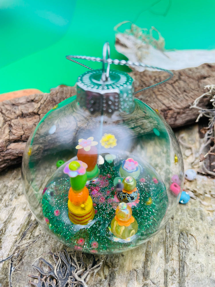 So no one is surprised that I wanted to make Lily-Once-A-Time Christmas baubles! I wanted a Christmas bauble that doesn't exist anywhere else and that keeps the unique secret garden side. So it was during a dream that I imagined these little glass balls, filled with resin as a soil, on which grows a small imaginary garden made of new and recycled beads, glitter and sequins.