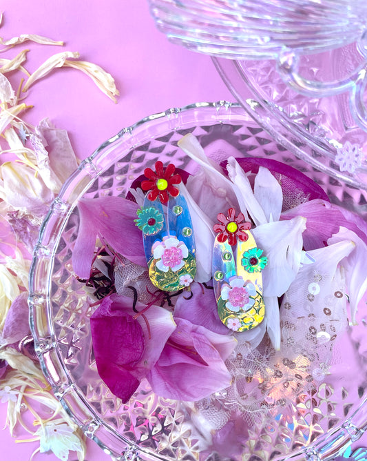 Découvrez mes boucles d'oreilles uniques en résine et sequins, mes broches fantaisie, mes barrettes à accrocher pas uniquement dans les cheveux, ou encore mes nœuds papillons originaux et pochettes de soirée pour faire sensation. Chaque pièce est unique et fabriquée à la main avec amour, pour accompagner vous transformer en fée, en elfe ou en princesse !