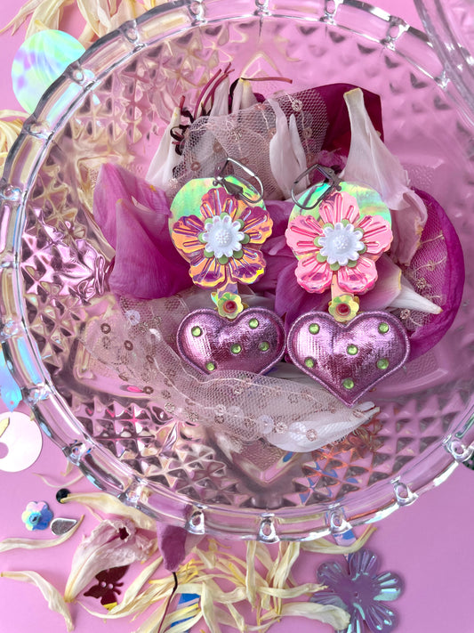 Boucles d’oreilles féériques et légères – "Un coeur et des fleurs" - Collection Été 2025