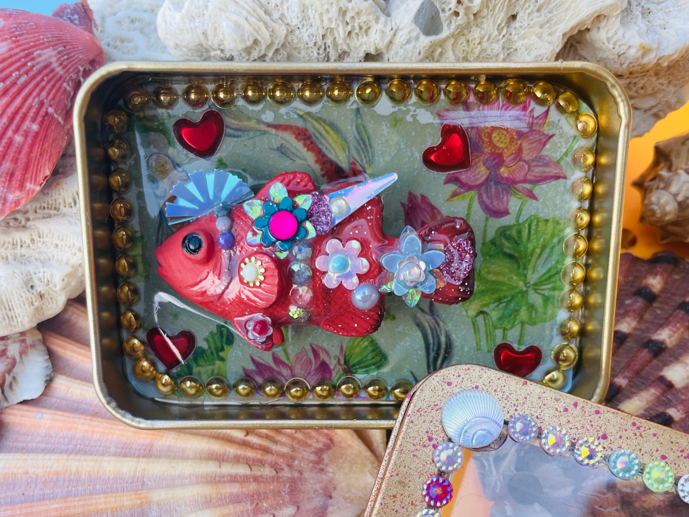 Boîte de Curiosité Fantastique - Création Originale Artisanale - Poisson "Miroir des Abysses"